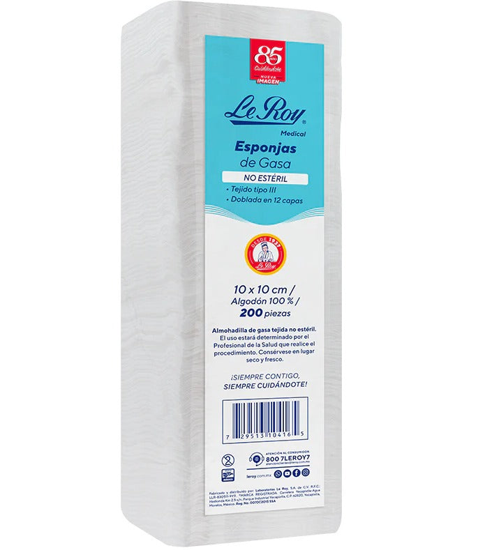 Las gasas son elaboradas de tela con hilo 100% algodón de tejido plano, quirúrgicamente blanqueada, de acabado suave, atóxica libre de impurezas, desechable con propiedades absorbentes para uso médico.